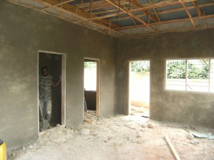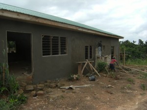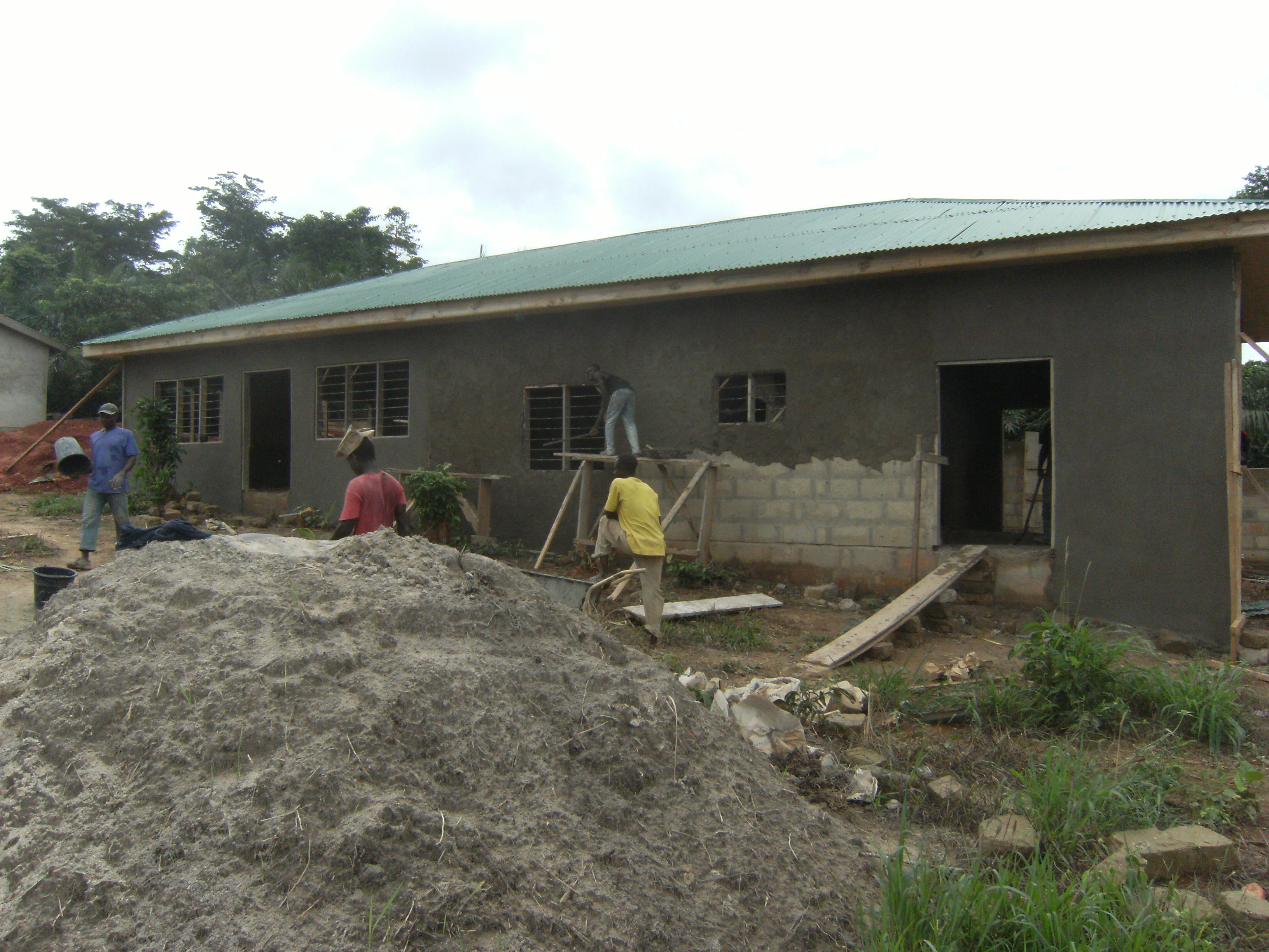 Und die Kueche…ja, die Kueche waechst und waechst. Die Elektriker haben bereits die Stromleitungen verlegt und nun verputzen die Maurer die Waende sowohl innen als auch aussen. Es sieht gut aus und ich freue mich schon auf mein erstes Fruehstueck in dem grossen Essbereich. Und vielleicht finde ich mich selbst ja auch einmal in der Kueche wieder beim Zubereiten eines ghanaischen Gerichts.