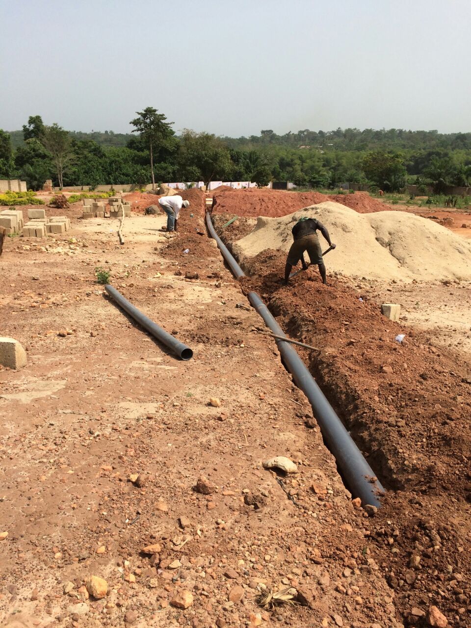 Das erste Viertel im Jahr 2015 ist vorüber. Im Children’s Village geht es weiter im Alltag und auch endlich wieder im Bauprozess. Das sechste und siebte Haus haben einen pastelligen Innen- und Außenanstrich erhalten und sind nun auch komplett sanitär ausgestattet. Theoretisch können also bald neue kleine und große BewohnerInnen einziehen…wer weiß, was sich in den kommenden Wochen ergibt? Um es wirklich wohnlich in den beiden Häusern werden zu lassen, fehlt allerdings noch die Inneneinrichtung.Parallel zu den Malerarbeiten wurden beide Häuser an die zweite Klärgrube angeschlossen.