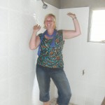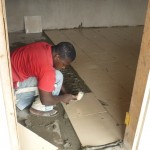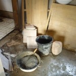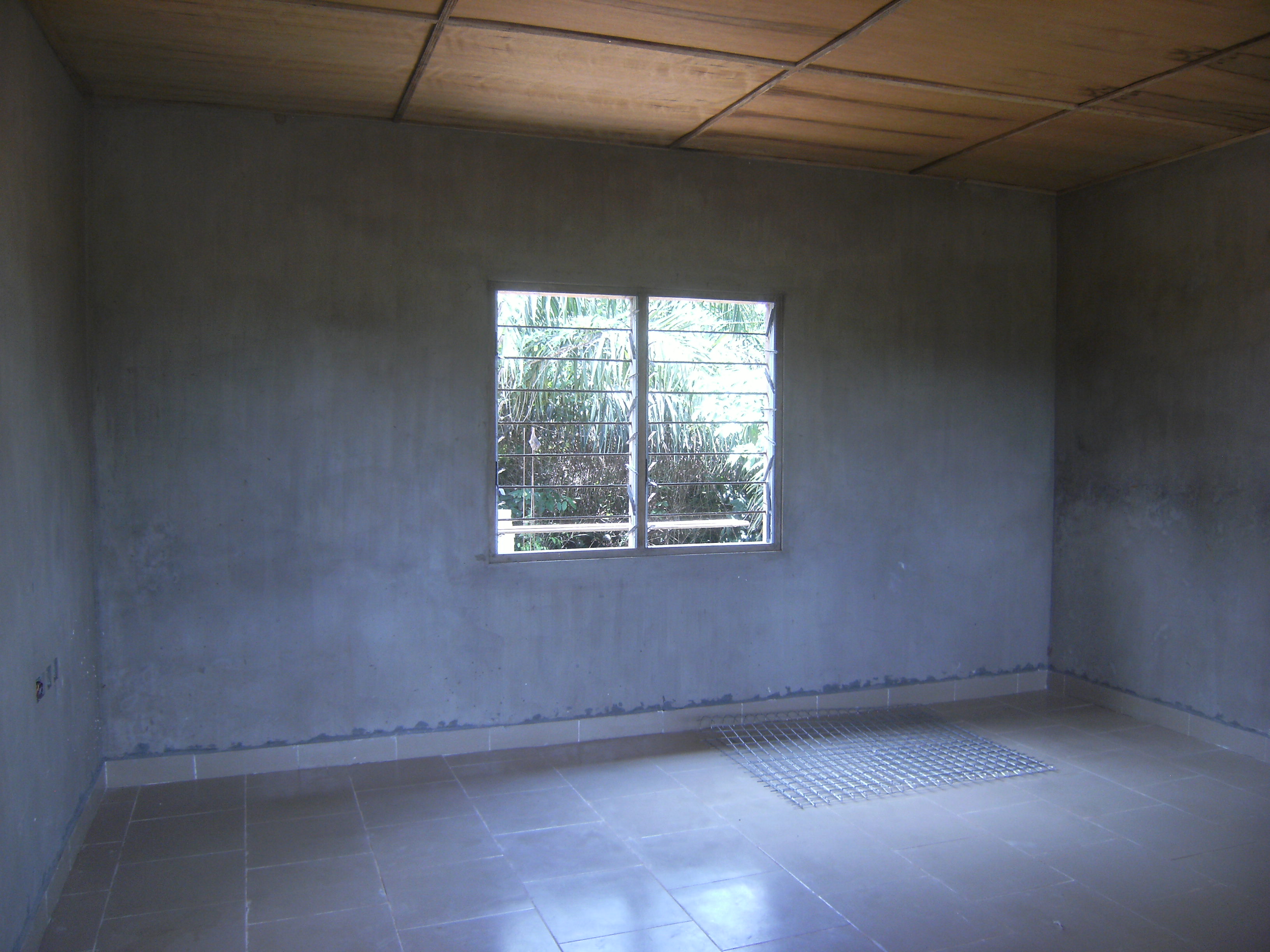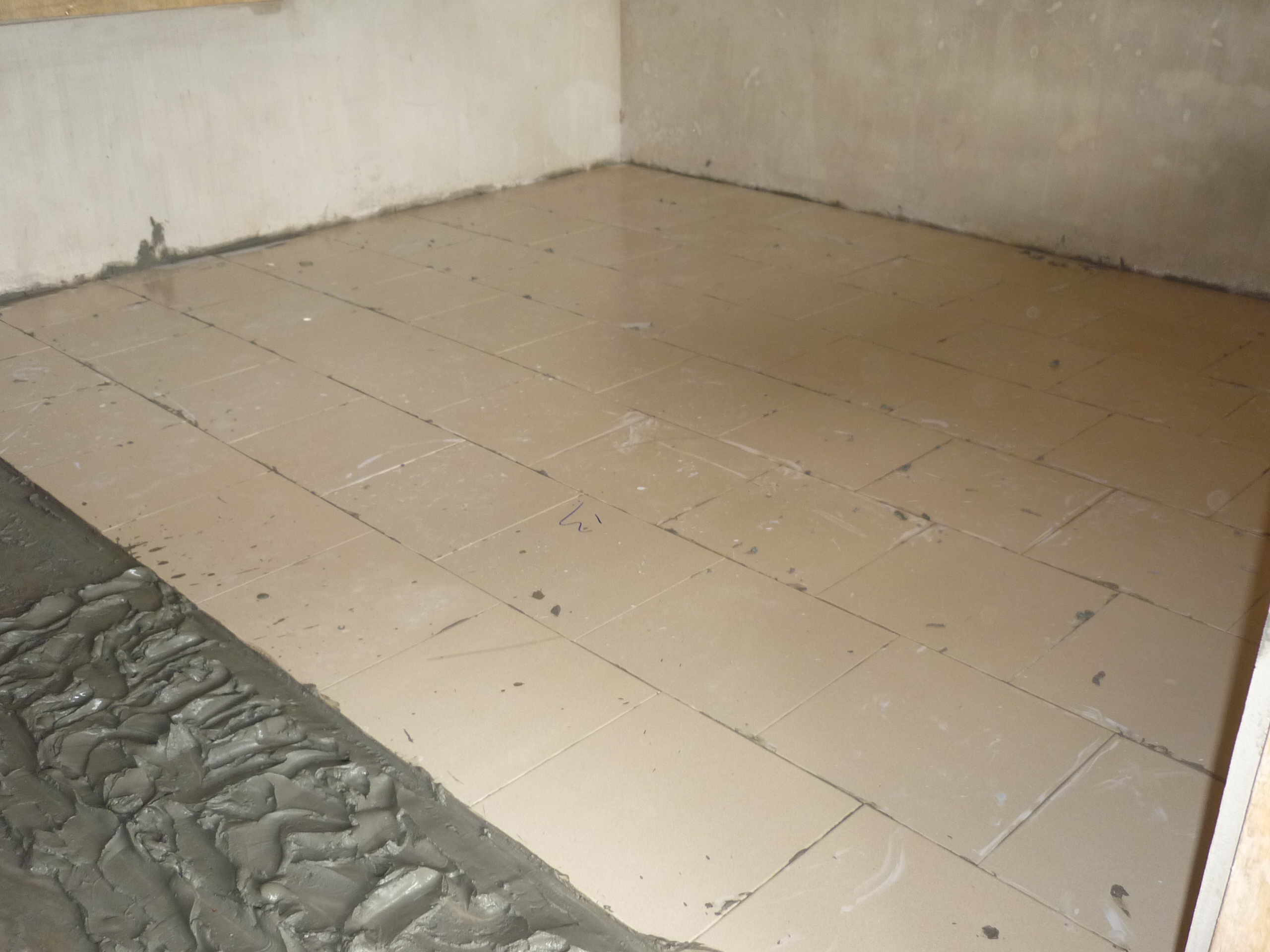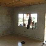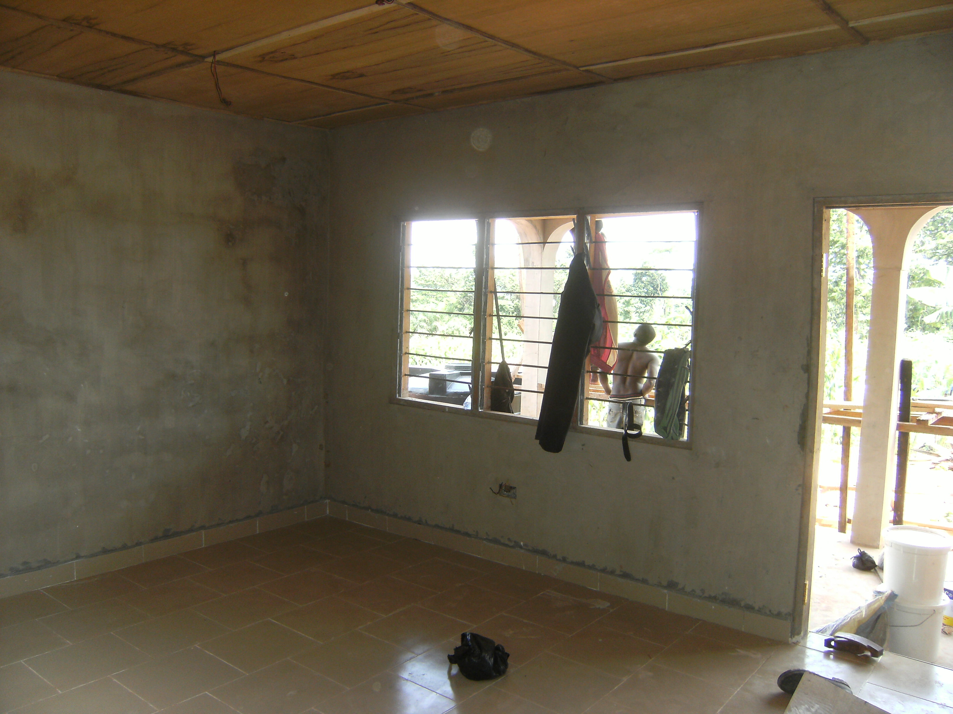 Inzwischen sind sowohl der Wohn- und Schlafraum als auch die Toilette und der Duschraum komplett gefliest, die Toilette, das Waschbecken und die Dusche sind installiert, die Decken verkleidet. Es fehlt noch die Verlegung der Fliesen auf de Veranda und im Flur sowie das Befestigen der Lamellenfenster und das Einhängen der Türen.