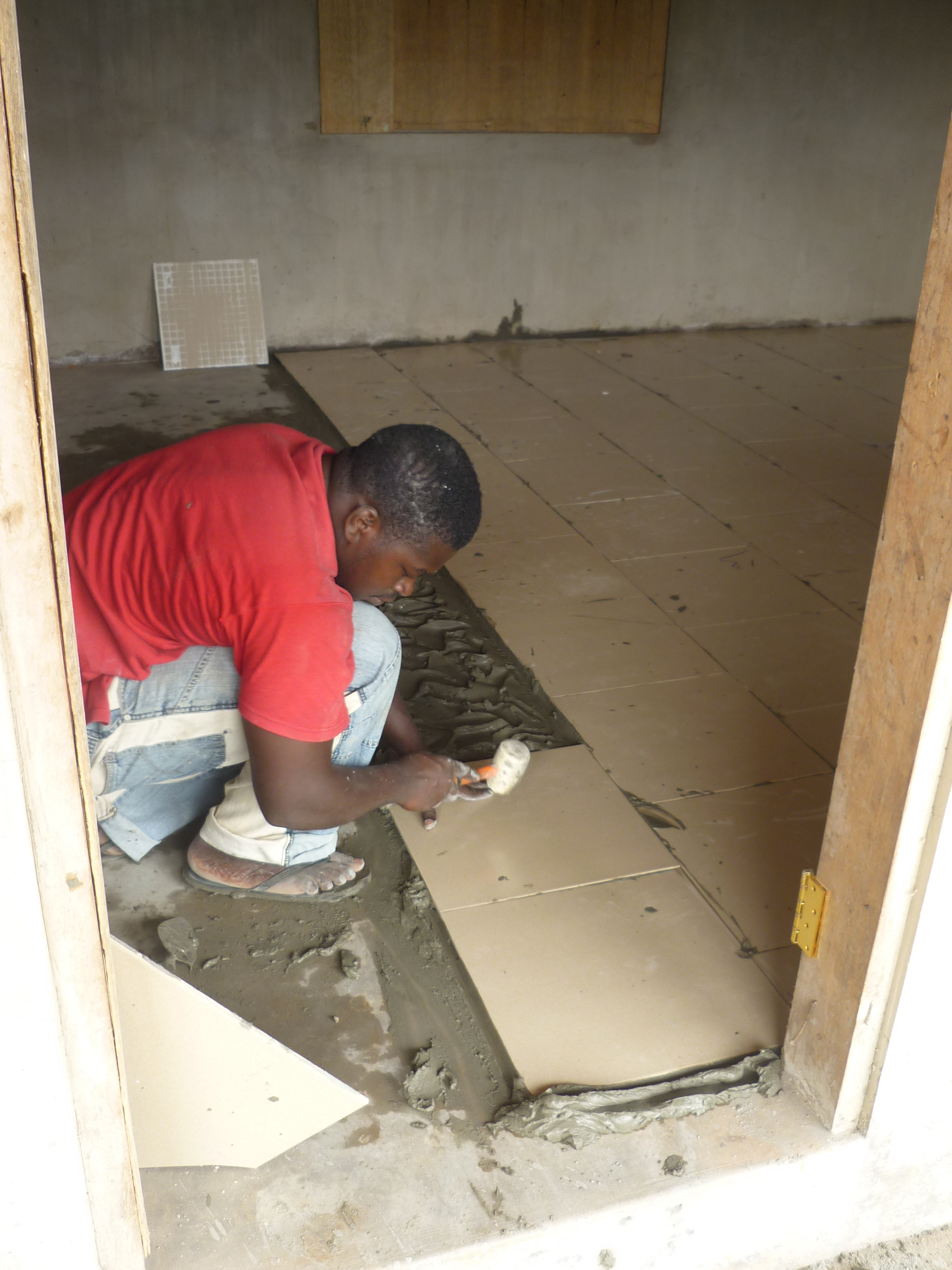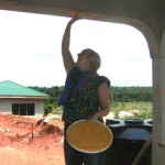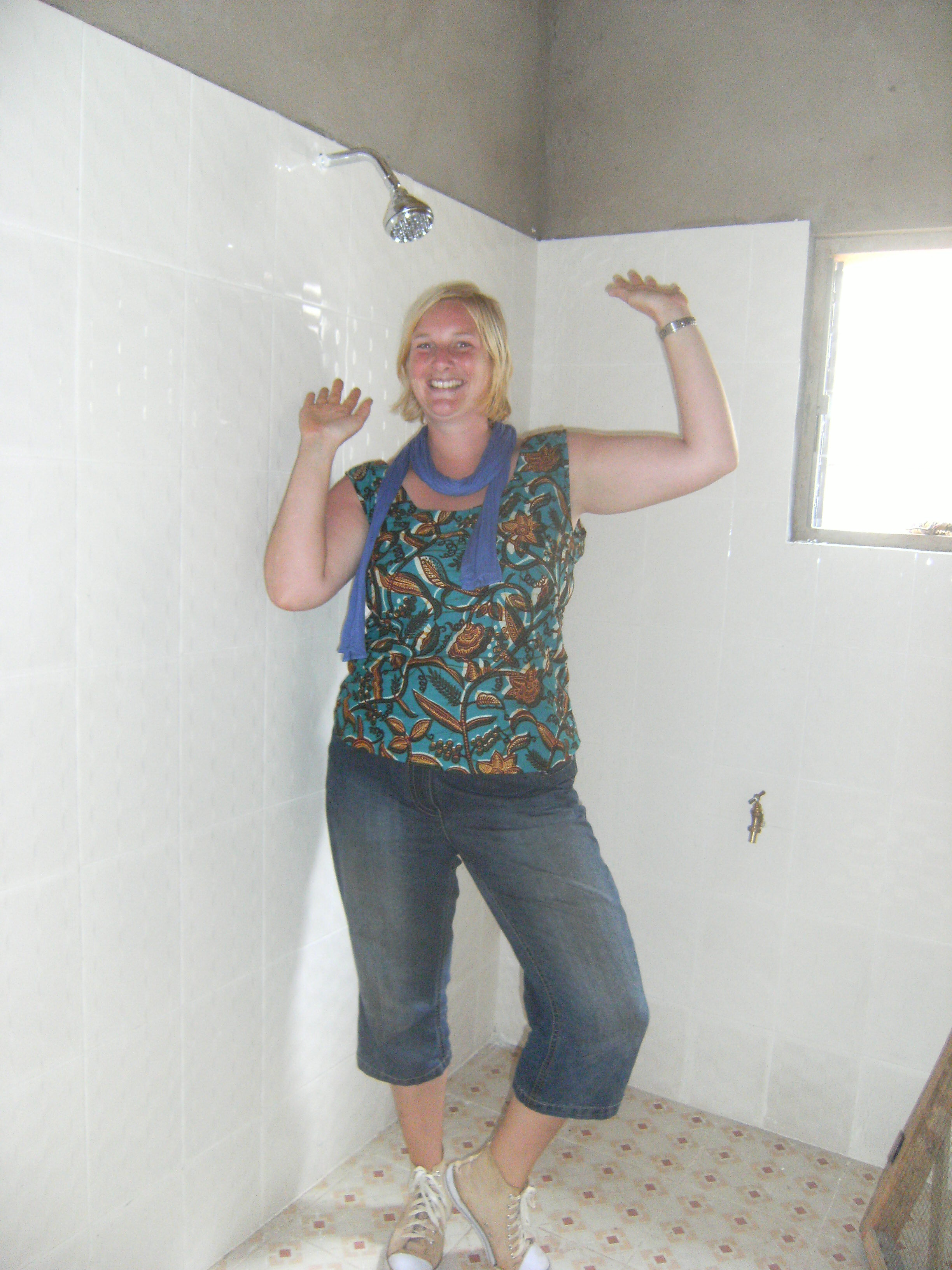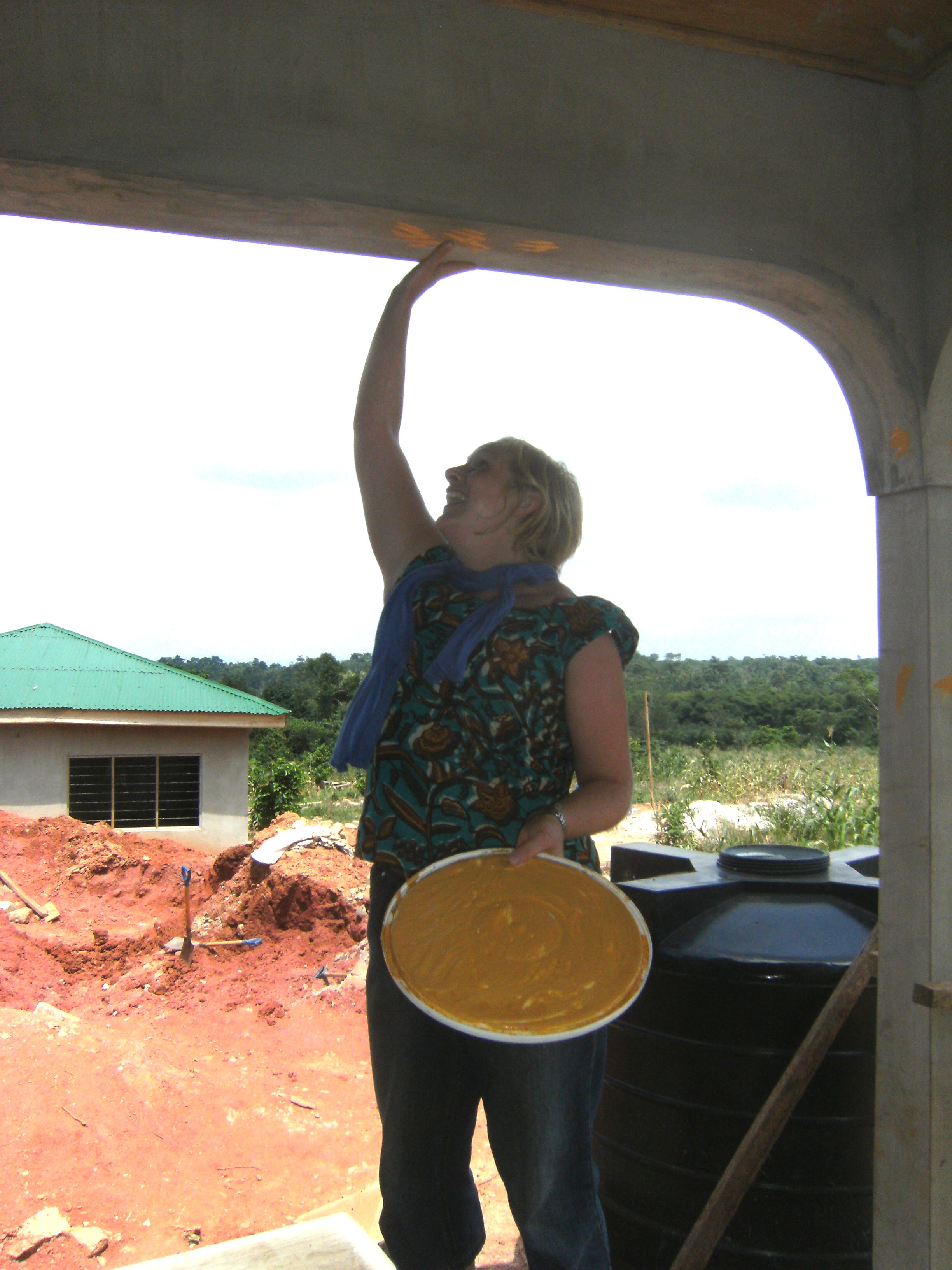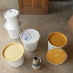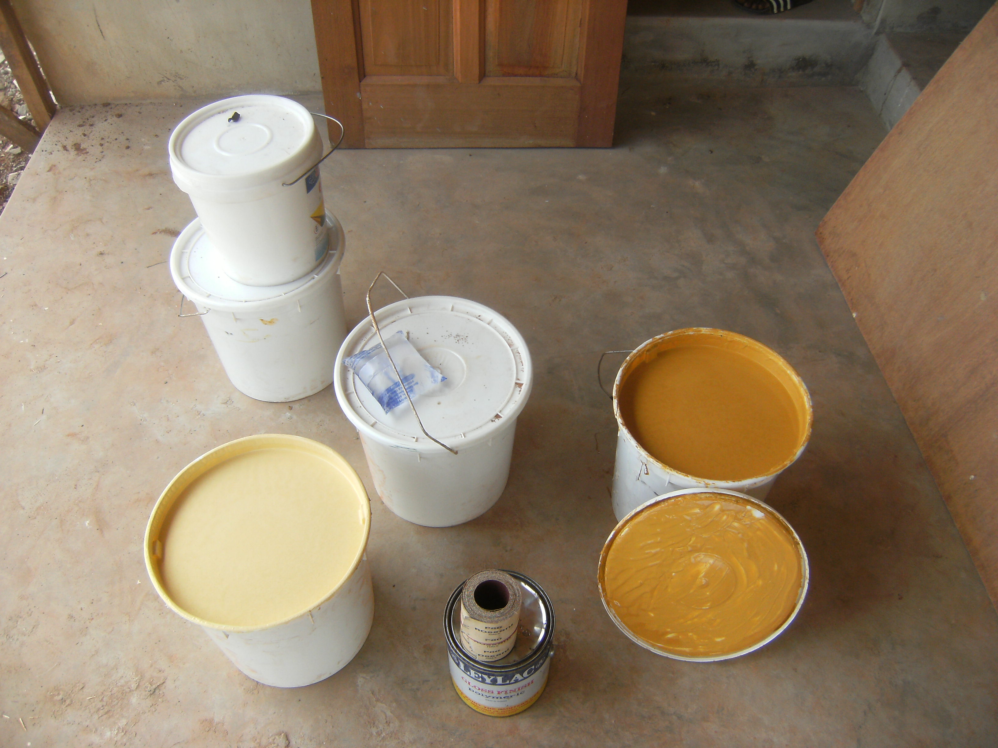 Nun stehen wir im Children’s Village auch vor den Farbentscheidungen. Da wir uns entschlossen haben, Haus Nr. 5 als Modellhaus komplett fertig zu stellen, schließt das Farbe mit ein. Doch für wlche sollen wir unsnetscheiden? In einem eigens für diese Frage einberaumten Meeting haben wir uns auf ein Konzept geeinigt: jedes Haus erhält eine andere Farbe. Diese Idee kam bereits bei der Planung der Häuser ins Spiel und wurde nun festgelegt. Jedoch sollen der Innen- und der Außenbereich der Häuser in zwei verschiedenen Farbnuancen gestrichen. Zum Innenbereich zählen neben dem Wohn- und Schlafraum auch die Toilette, der Duschraum, der Stauraum sowie der Flur und die Innenseiten der Veranda. Den Außenbereich bilden die Außenwände, die Verandasäulen sowie die an die Veranda grenzende Wand des Wohn- und Schlafraumes. Nun also die Frage, welche Farbe die erste sein soll. Wie soll Modellhaus „Haus Nr. 5“ erstrahlen? Die Entscheidung haben uns die bereits verlegten gelb-rot-orangen gemusterten Bodenfliesen der Dusche und der Toilette abgenommen. So wird es also eine Kombination aus hellem Orange und hellem Gelb. Um dem Maler die Sache zu vereinfachen, haben wir die Bereiche in den entsprechenden Farben markiert und hoffen nun, dass der Pinselmeister die Markierungen richtig liest. Für die anderen Häuse heißt das nun, Fliesen und Farben passend auswählen. Sicher ist eins: es wird ein buntes Kinderdorf, so vielfältig wie die Kinder die dort leben und die Mitarbeiter die für die sorgen werden.