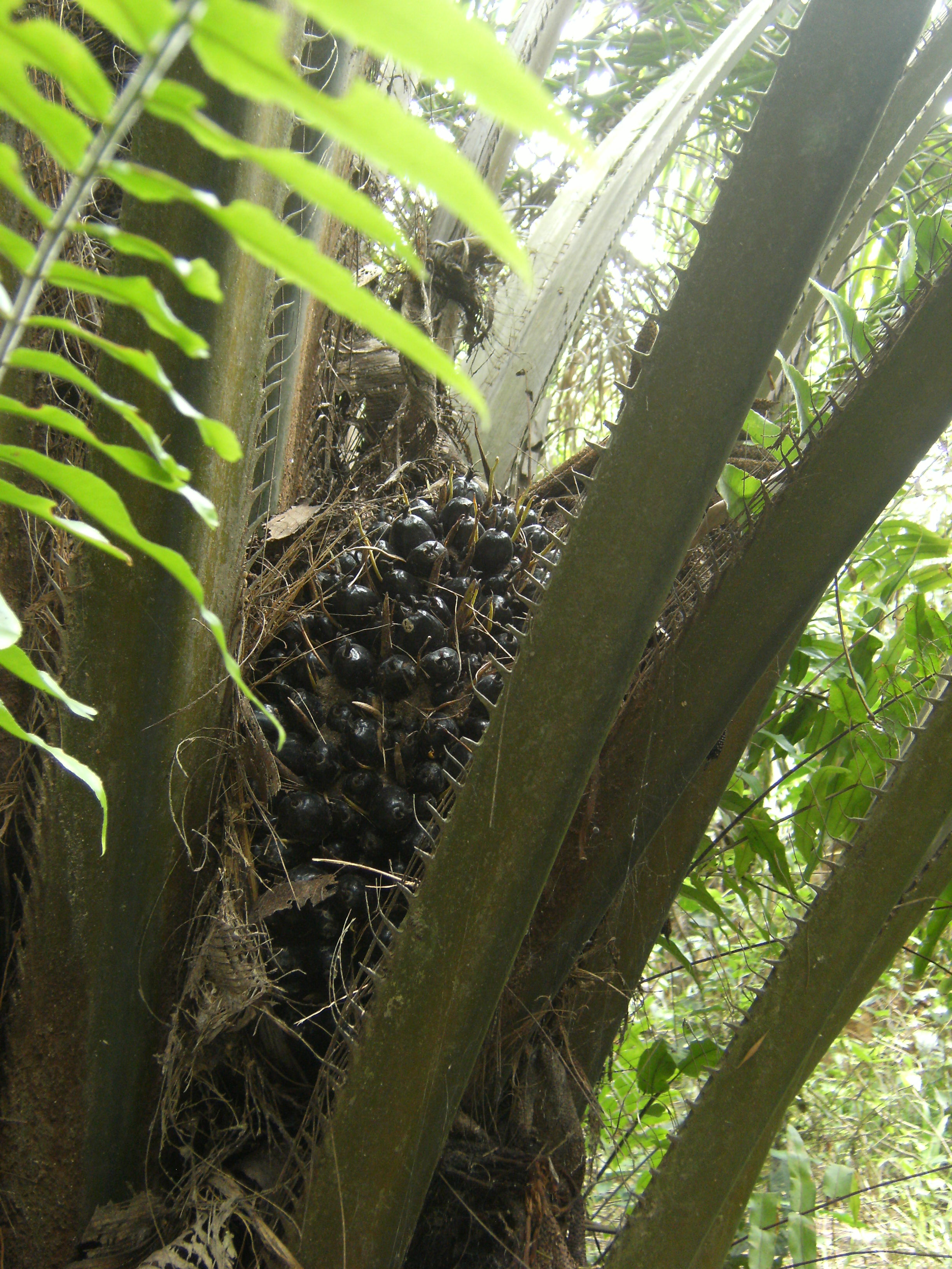 Ein weiterer Grundstein fuer unser zukuenftig selbstversorgtes Projekt ist der Einstieg ins Oelgeschaeft. Zu diesem Zweck haben wir vier Hektar Land mit geschaetzten 450 Oelpalmen erworben. Palmoel ist das am meisten verwendete Oel in Ghana. Auch international spielt das rote Gold eine wichtige Rolle, zaehlt es doch zu den am billigsten zu produzierenden Oelen fuer die Lebensmittelindustrie. Leider fuehrt das in anderen Laendern zur Schaffung von extrem grossen monokulturellen Oelplantagen, fuer die riesige Flaechen Regenwald abgeholzt sowie Menschen vertrieben werden (so z.B. in Malaysia). Unsere Palmoelfarm ist weit von einer Monokultur entfernt. Von der Konsistenz ist das rote Gold nicht wie anderes Oel (bspw. Sonneblumenoel) duenflueesig, gelb bzw. gruen und klar, sondern dickfluessig, trueb und rot bzw. orange. Erst beim Erhitzen wird es fluessig und klar, dennoch behaelt es seine roetliche Farbe. Der Vorteil von Palmoel ist u.a., dass die Oelpalmen mehrmals im Jahr geerntet werden koennen. Die Fruechte wachsen schnell und sind ertragreich. Fuer die Lebensmittelindustrie ist neben dem Oel aus den Fruechten auch das Oel der Kerne von Nutzen. Es befindet sich z.B. in Eiskonfekt und gibt diesem die kuehle Schmelze. Das Oel, was wir gewinnen werden, wird lokal gewonnen. Zu Anfang werden wir Menschen beauftragen, die das Oel durch das Stampfen der Fruechte gewinnen, aber in Zukunft wollen wir eine eigene kleine Oelmuehle betreiben. So sind wir nicht auf die Dienste fremder Oehlmuehlen angewiesen und koennen so sicherstellen, dass der Gewinn zurueck in das Projekt fliesst, statt in den Transport der Fruechte sowie in die Taschen von Oelmuehlenbetreibern.