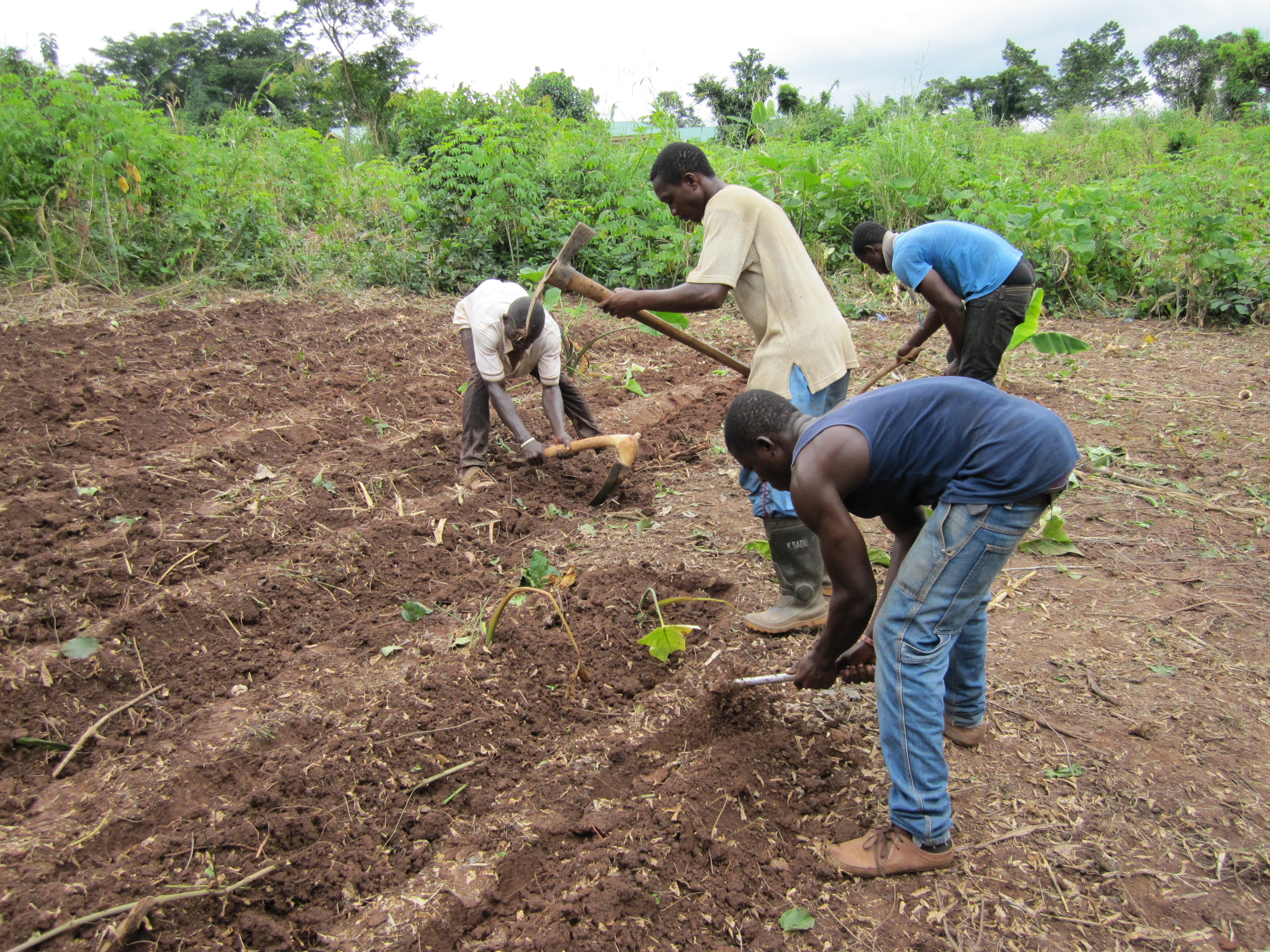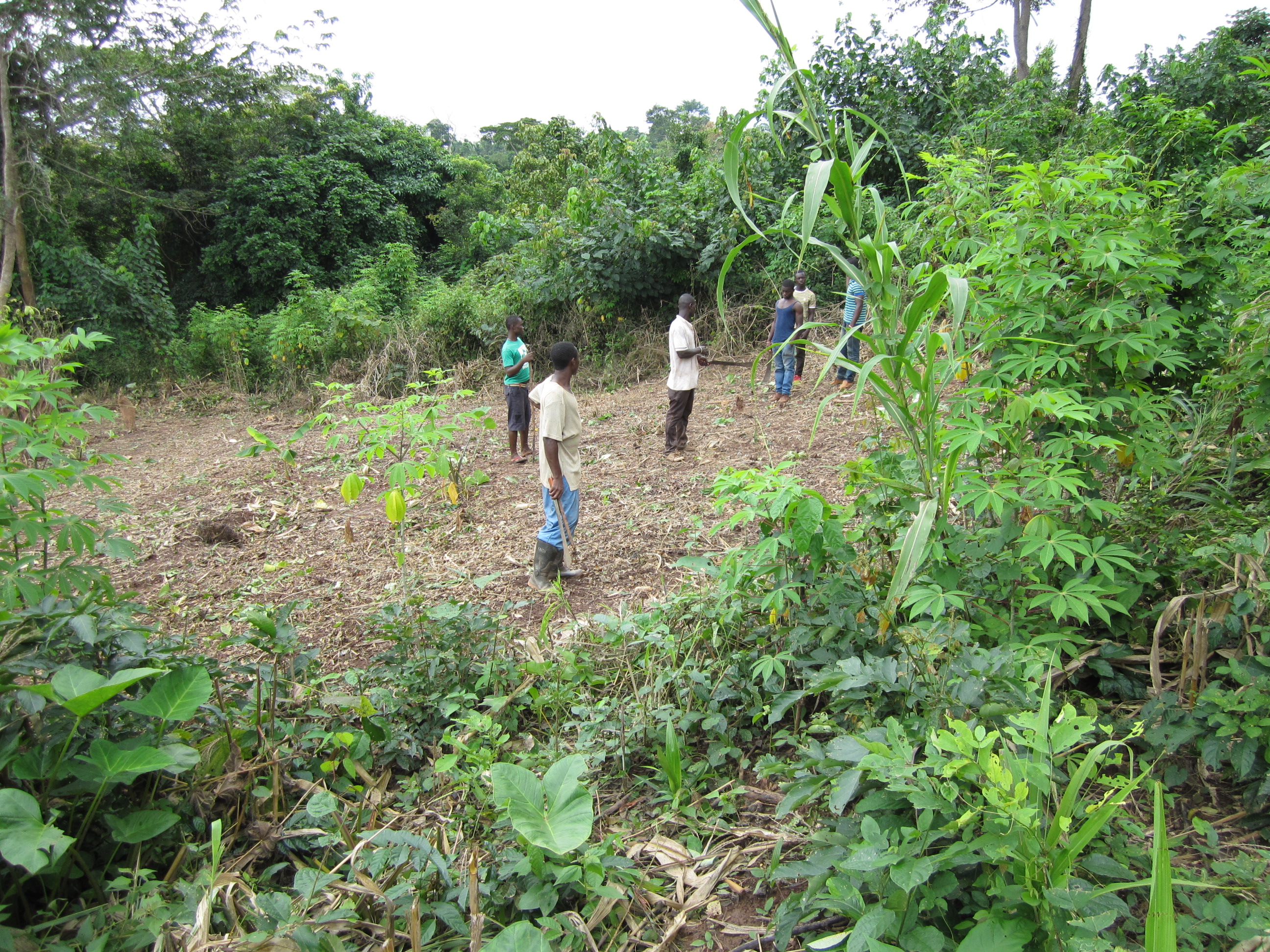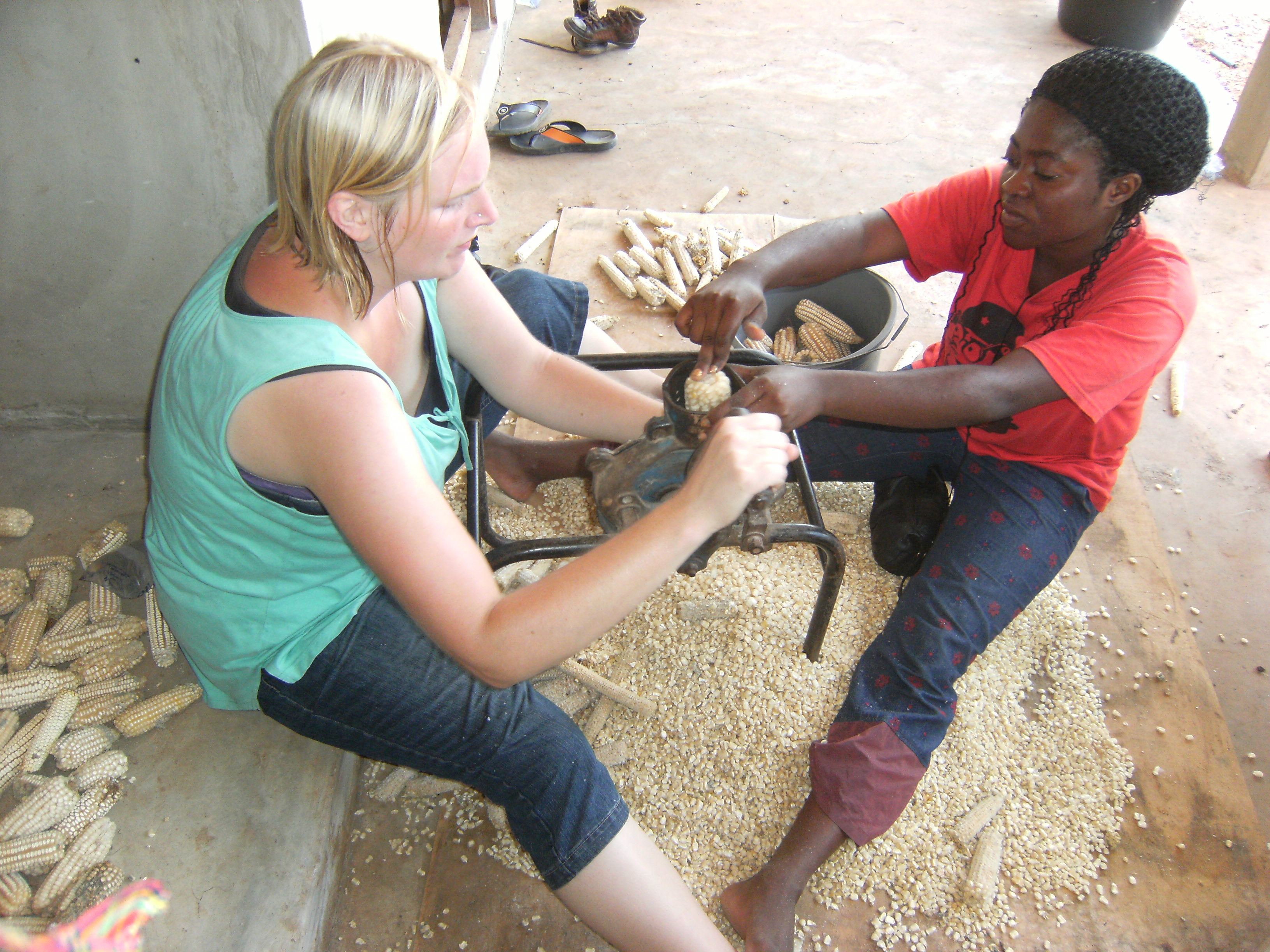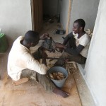 Langsam, aber sicher verändert sich die Gestalt des zukünftigen Children’s Village. Das dritte Haus ist fast fertig, Nummer vier ist bereits in Planung. Auf der den Häusern gegenüberliegenden Seite des Geländes haben wir vor ein paar Monaten angefangen, Landwirtschaft zu betreiben und Mais, Cocoyam und Cassava angepflanzt (siehe auch ältere Berichte). Der Mais ist geerntet und entkornt. Alles von Hand natürlich (siehe Fotos). Cassava und Cocoyam brauchen noch ein bisschen Zeit. Damit sie diese bekommen und uns nicht langweilig wird, haben wir vor zwei Wochen begonnen, hinter dem Maisfeld einen kleinen Acker so wie mehrere kleine Saatbeete anzulegen. Mit viel Man- und Womanpower ist es möglich geworden, innerhalb von wenigen Stunden aus mannshoch wachsenden Gras- und Buschflächen einen beeindruckenden Gemüsegarten zu schaffen. Jetzt müssen wir nur noch die grünen Daumendrücken und abwarten.