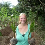 Kokospalmsetzling vorsichtig hineinlegen,
