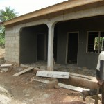 Ein nächstes Puzzlestück zur Fertigstellung des Children’s Village ist die Errichtung einer das Gelände umschließenden Mauer. Einerseits, um unser Gelände klar abzugrenzen. Andererseits um Diebe abzuhalten. Hier in Ghana ist es üblich (wenn über ausreichend Kapital verfügt wird), um sein Haus eine Mauer zu errichten. Je nach Wunsch und finanziellen Mitteln findet man einfache Mauern, die sich leicht erklimmen lassen oder solche mit Stacheldraht, Glasscherben, Eisenspitzen, Elektrodraht geschmückten. Das Children’s Village wird eine der letzt genannten Varianten in Betracht ziehen. Da sich das Gelände ein bisschen im Nirgendwo befindet und keine direkten Nachbarn hat, ist das der sicherste Weg, Eigentum zu schützen. Verstärkt wird die Schutzfunktion später durch einen Wachmann und bestimmt den einen oder anderen Hund. Ich lebe übrigens auch in einem ummauerten Haus. Allerdings gehört die Mauer zu dem Typ „leicht zu überwinden“. Neben Mauern, Wachleuten und Hunden sichern die Leute hier Ihre Häuser mit Eisengittern vor Fenstern und Türen. Es ist schon ein bisschen merkwürdig, aber auch verständlich.
