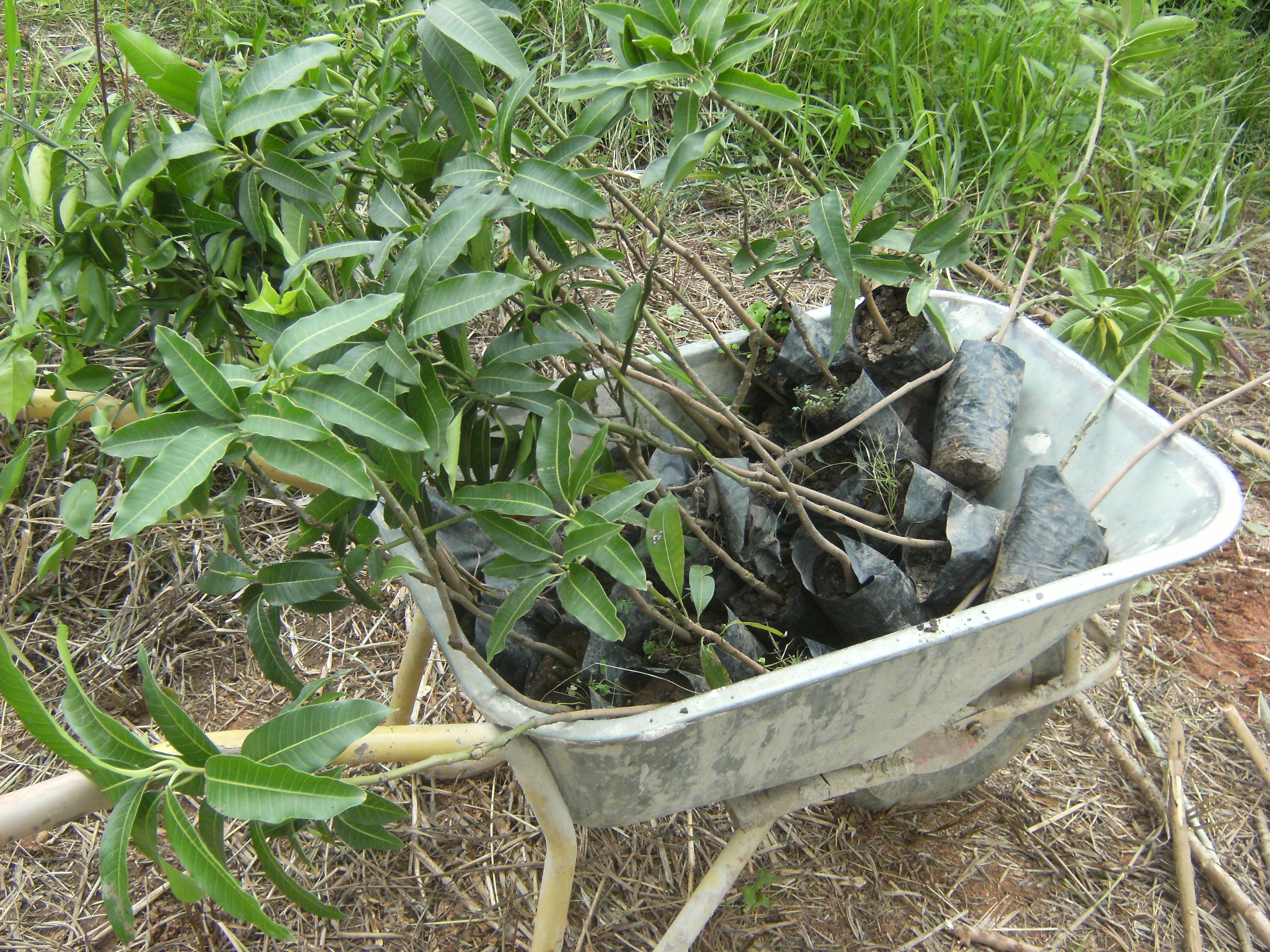 Rechts vom Eingang des zukünftigen Children’s Village haben wir einen kleinen, aber feinen Orangen-Mango-Hain angelegt. Noch sind die Bäume Winzlinge, aber in ein paar Jahren werden sie hoffentlich die ersten Früchte tragen. Ich habe hier in Ghana zwei Mangosorten kennengelernt. Das sind einmal die kleinen, haarigen Mangos. Sie wachsen an hohen Bäumen und werden schnell faul. Ist es ihre Saison, kann man sie haufenweise am Straßenrand kaufen oder selbst in den Busch gehen und sie pflücken. Ich persönlich mag diese Mangos nicht so gerne. Das Children’s Village verfügt nun über 20 Mangobäume, deren Früchte man auch in deutschen Supermärkten kaufen kann. Wenn die Bäume groß und stark genug sind, lassen sich bestimmt auch prima Hängematten zwischen ihnen aufhängen.