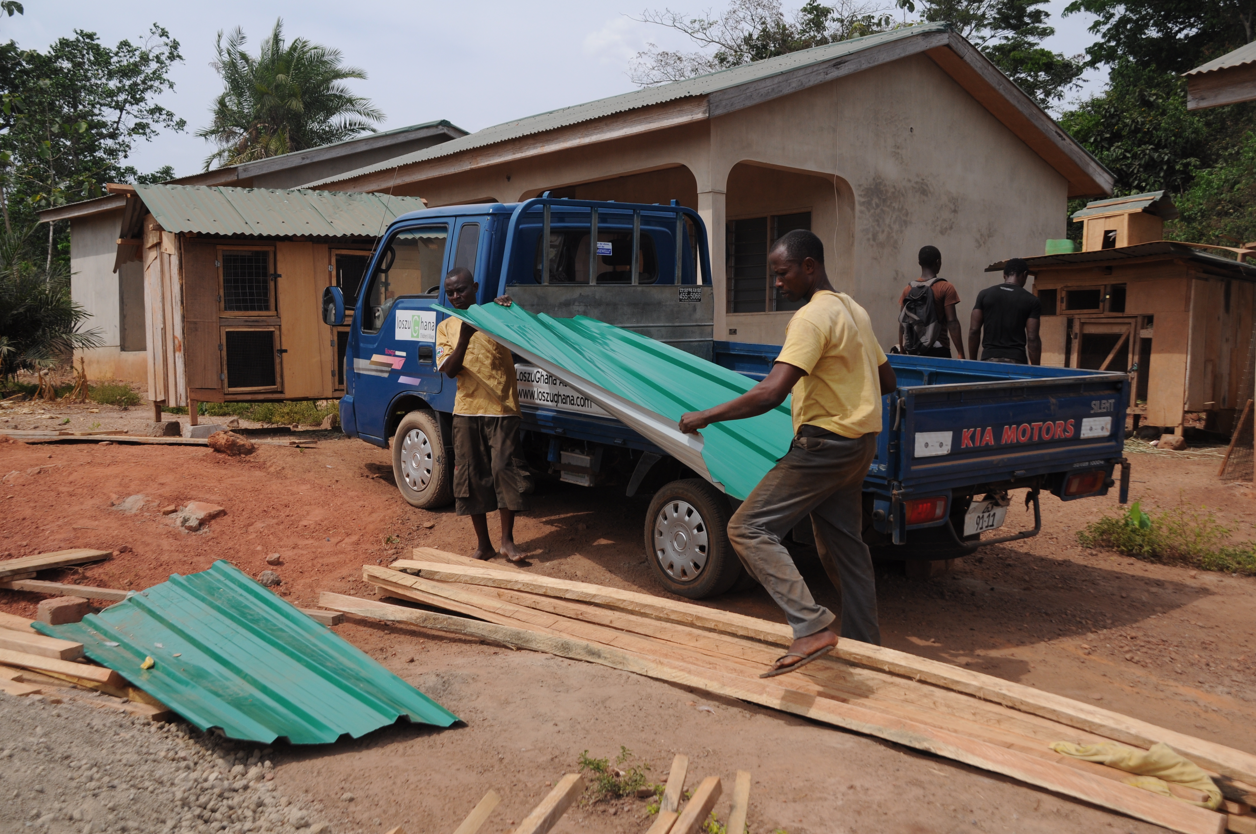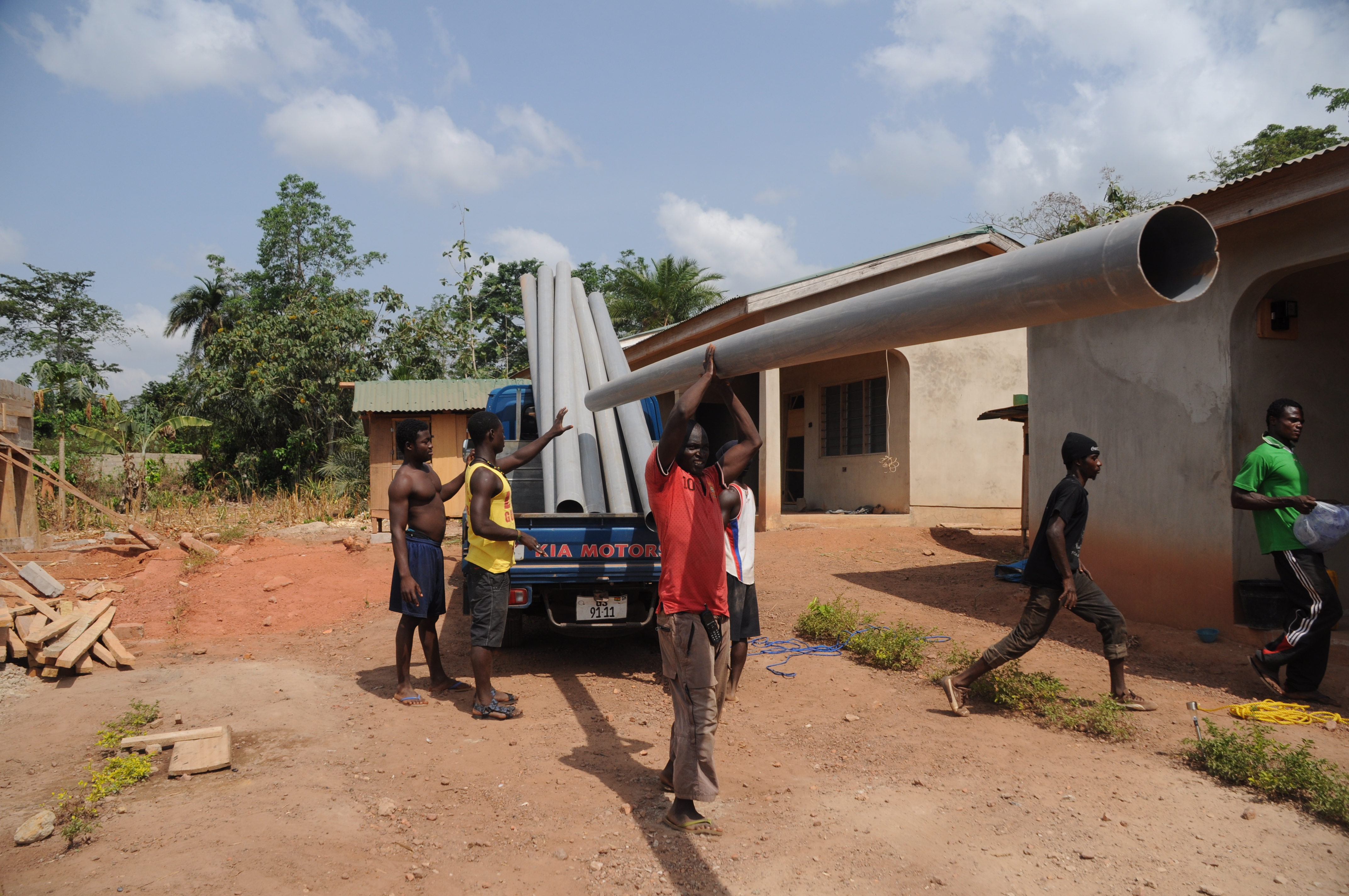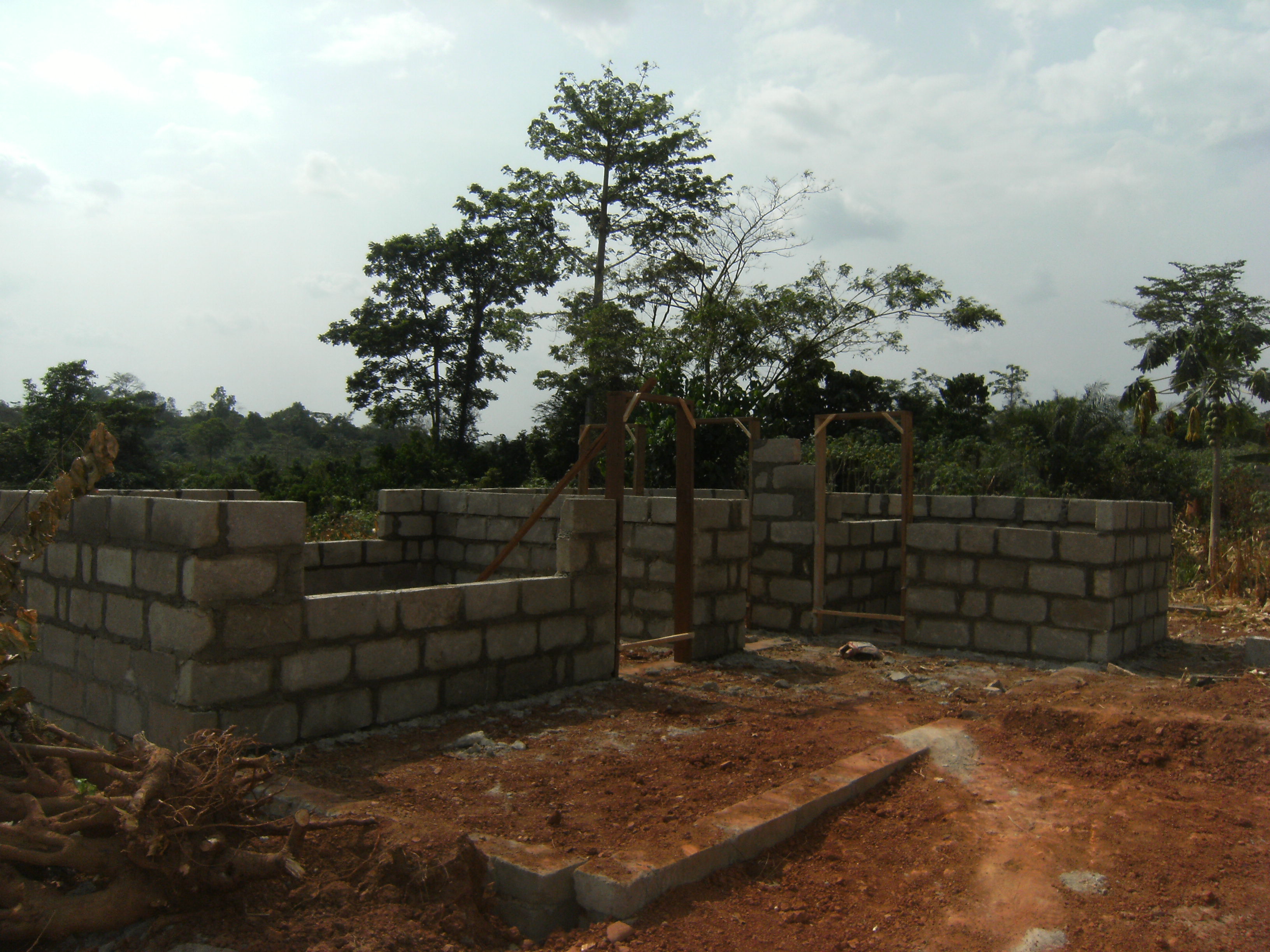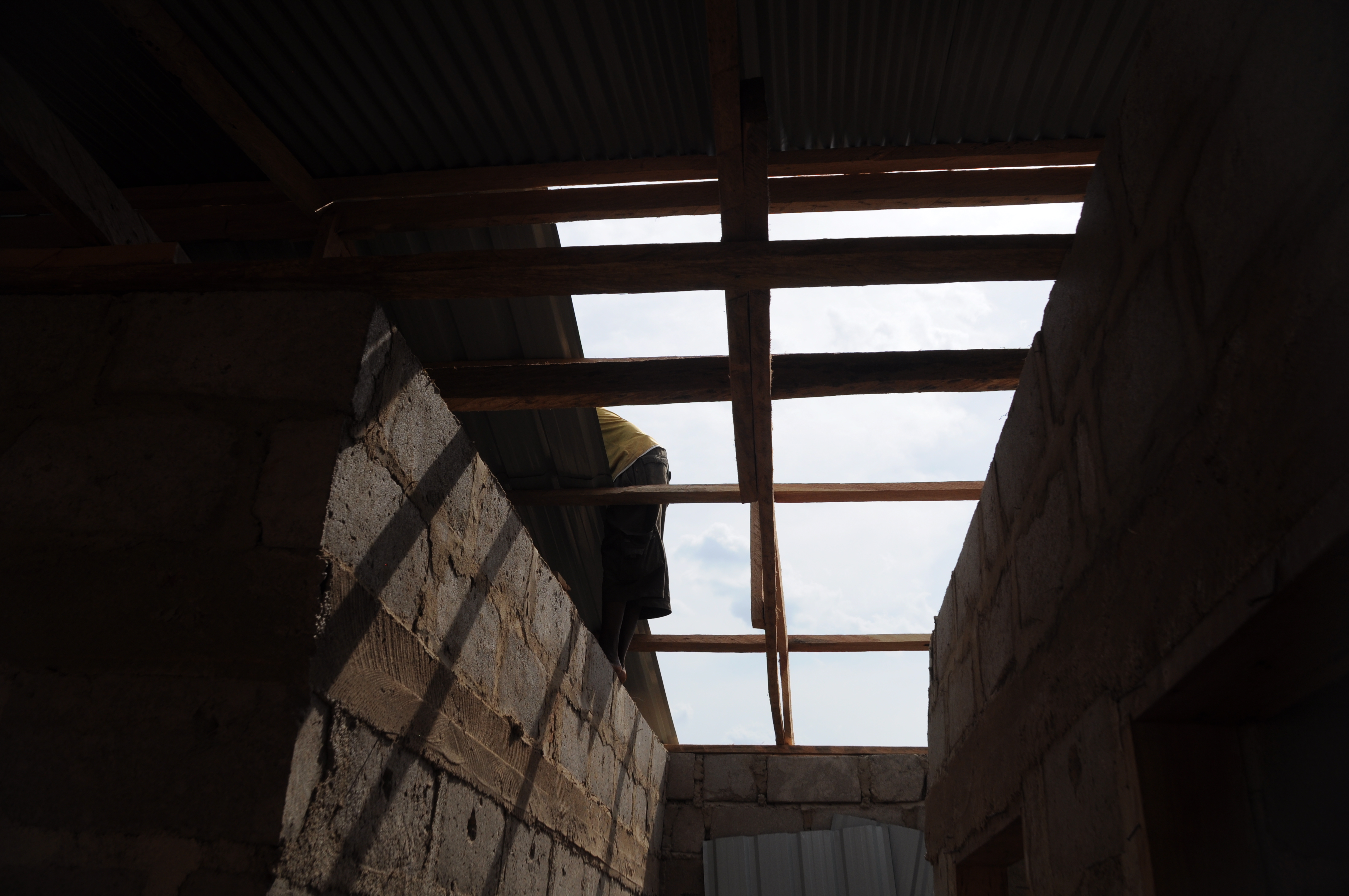 Die Arbeiter und Freiwilligen im Children’s Village wachsen mal wieder über sich hinaus. Mittlerweile ist das sechste Familienhaus bereits wie die anderen mit dunkelgrünem Dachwellblech gedeckt.  Außerdem wird die Lücke zwischen den beiden Mauerenden langsam geschlossen.