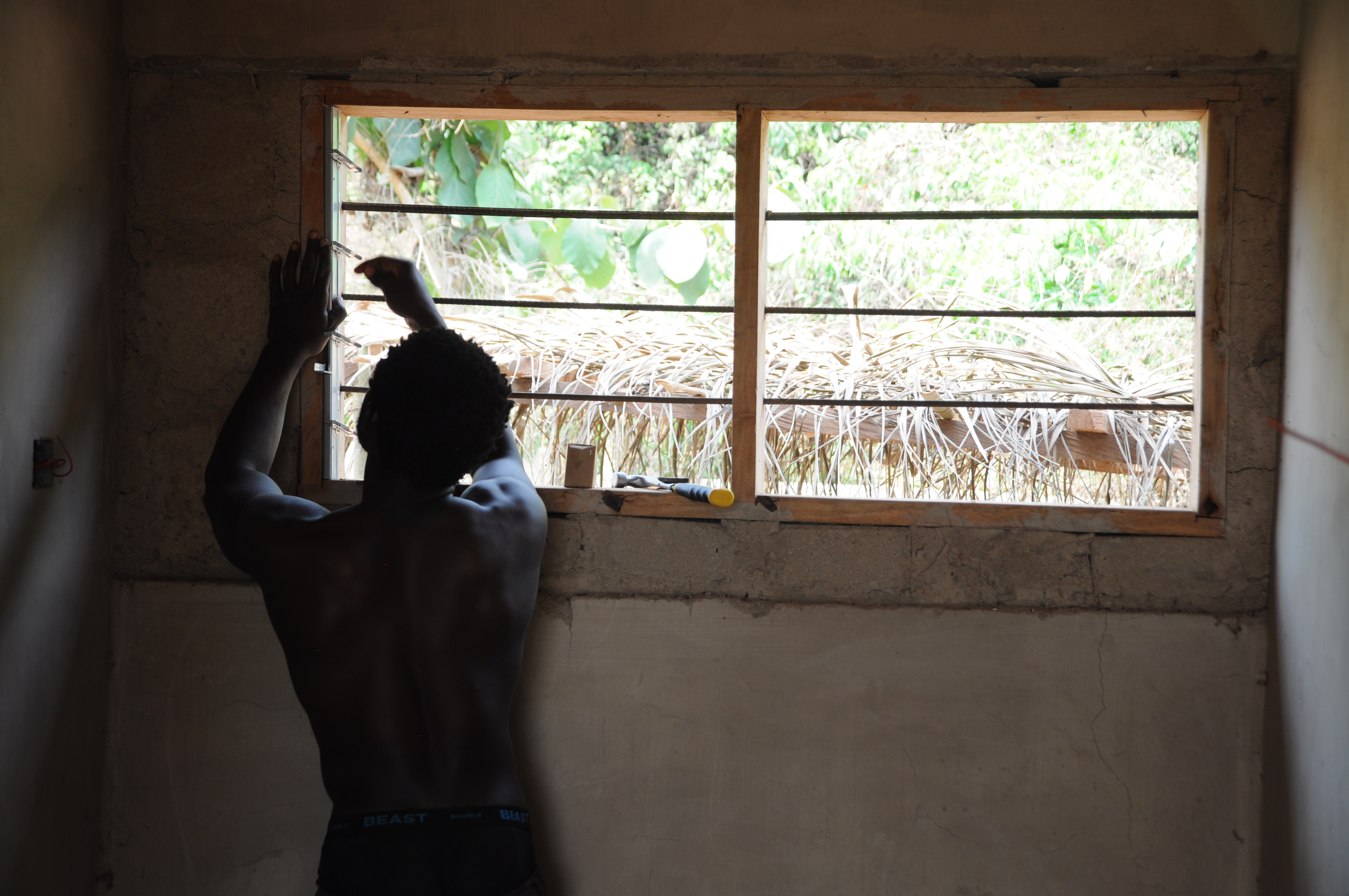 Alle Häuser inklusive der Küche wurden mit Glaslamellenfenstern versehen. Übernommen wurde diese Aufgabe von einem unserer einheimischen Freiwilligen, der ausgebildeter Fensterbauer ist.