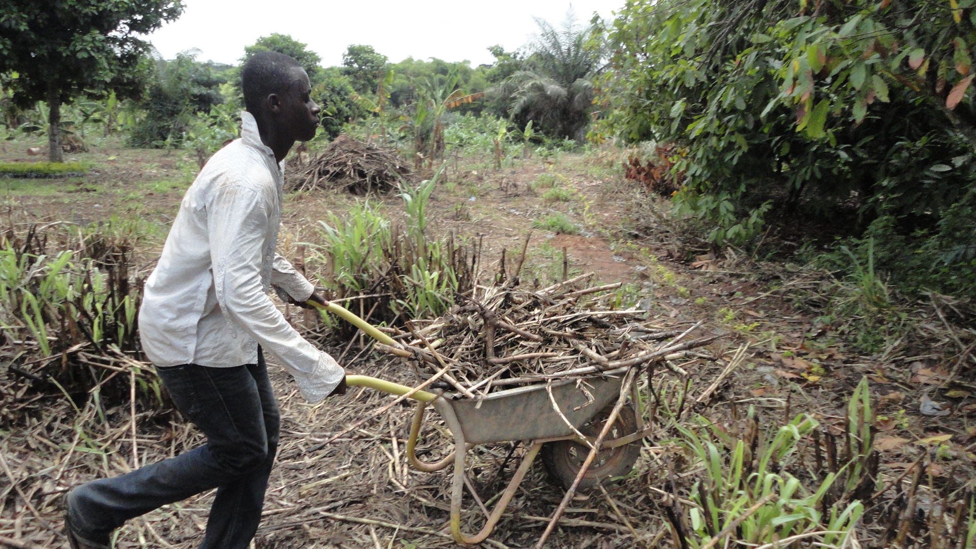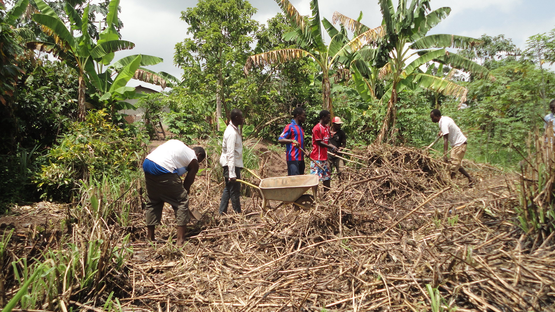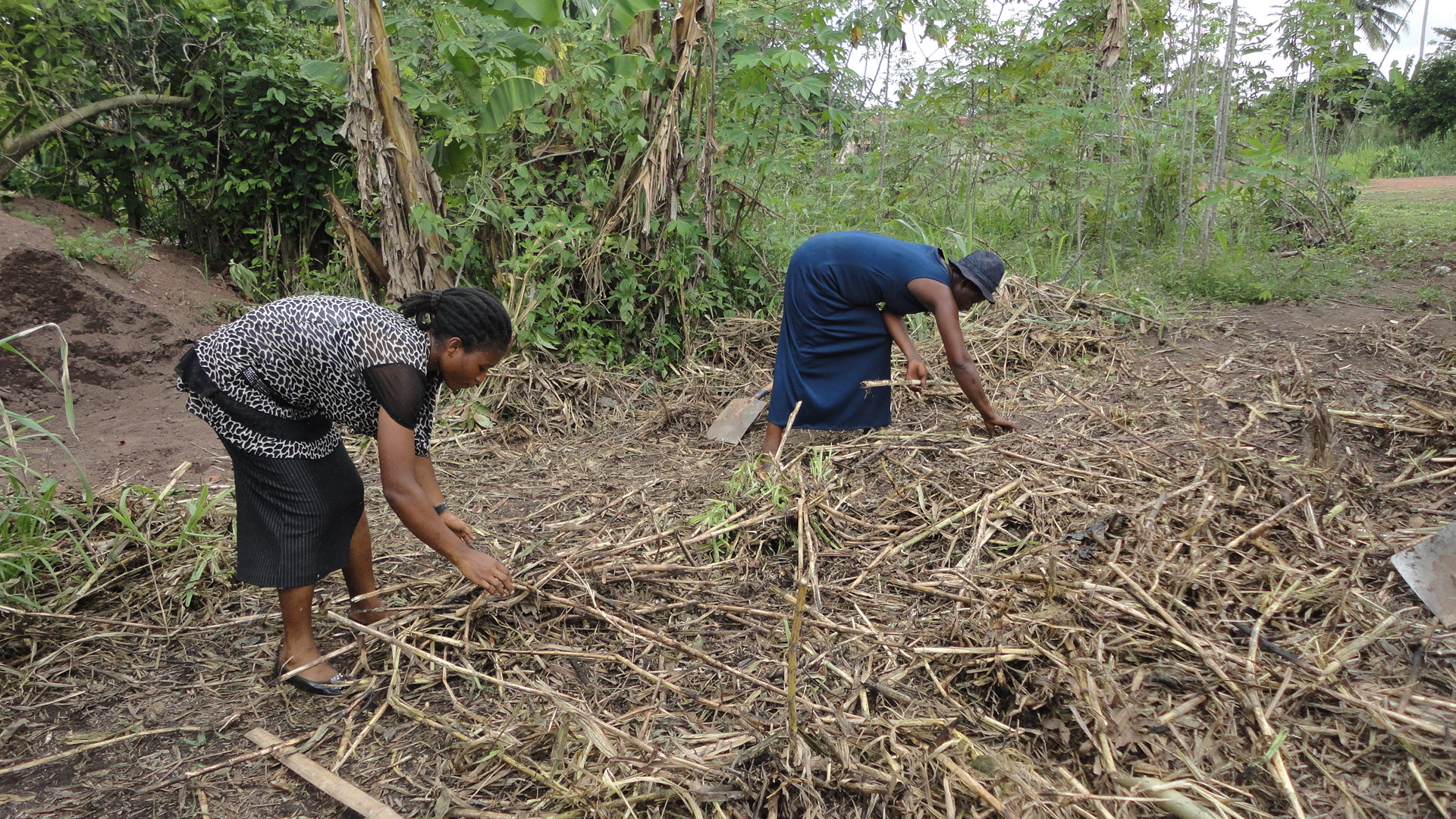 Jeden Dienstag ist in Old Adwampong der so genannte Dorfgemeinschaftstag. Statt wie sonst täglich Feldarbeit zu verrichten, versammeln sich an diesem Tag die Dorfbewohnerinnen und –bewohner und arbeiten zusammen im Dorf an unterschiedlichen Orten. Seitdem klar ist, dass wir die Schule wiederbeleben, helfen alle kleinen und großen Leute dabei, das Schulgelände von Unkraut und Müll zu befreien.
