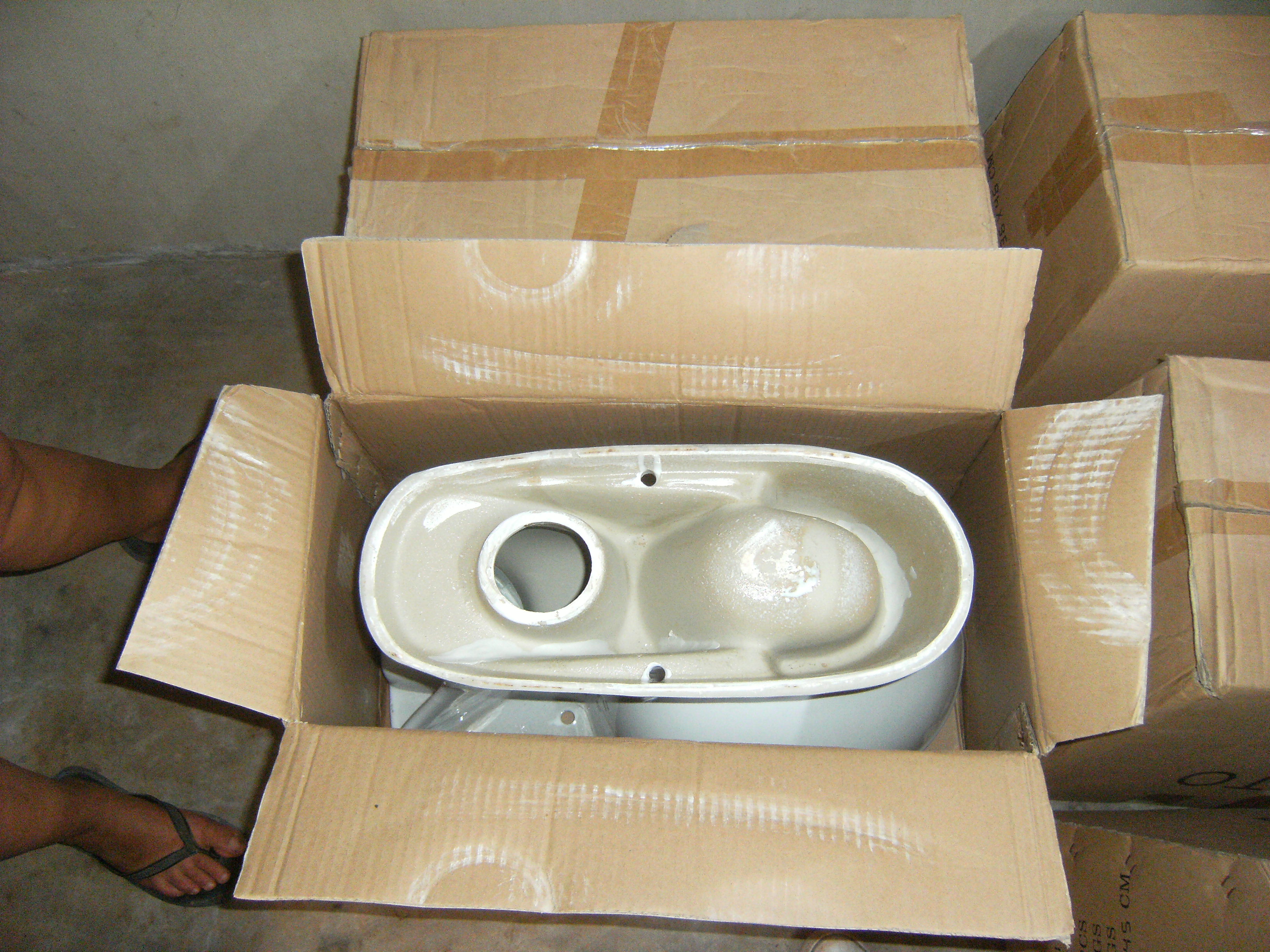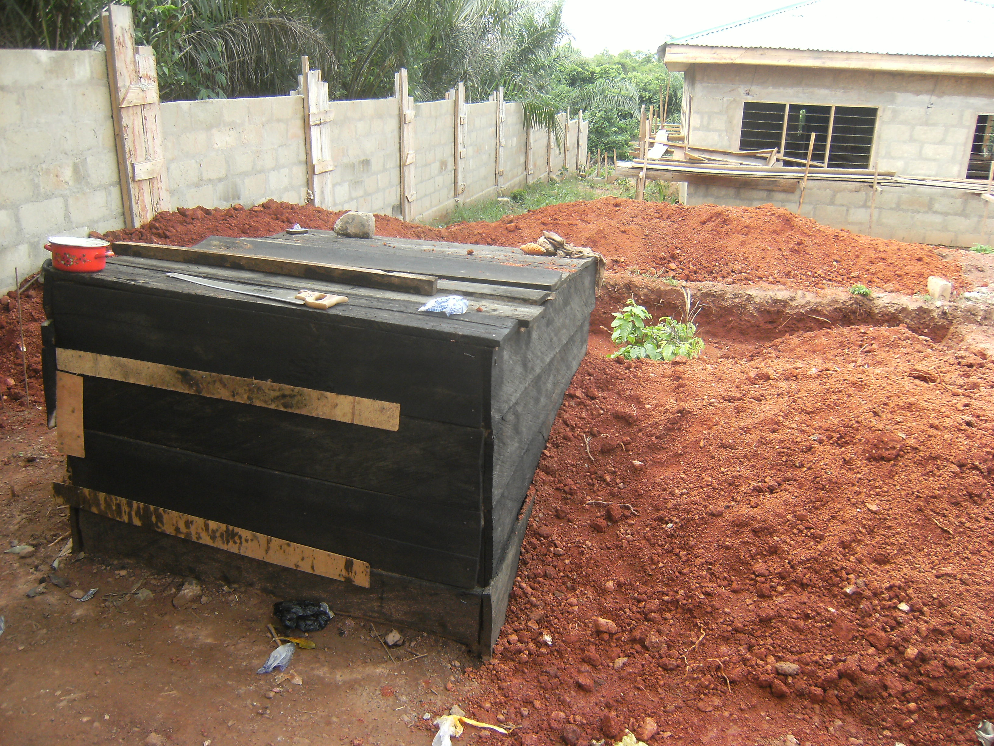 Wo das eine Ende der Kanalisation das Manhole ist, stehen in Zukunft bald an den anderen Enden in jedem Haus eine blendend weisse Toilettenschuessel und haengt an den Waenden ein wunderbares kleines Waschbecken. Beides frisch importiert aus bella Italia und nur fuer uns zum Sonderpreis von 1.700 Cedis. Pro Set aus Kloschuessel und Waschbecken also 340 Cedis (das sind aktuell ca. 144 Euro).
