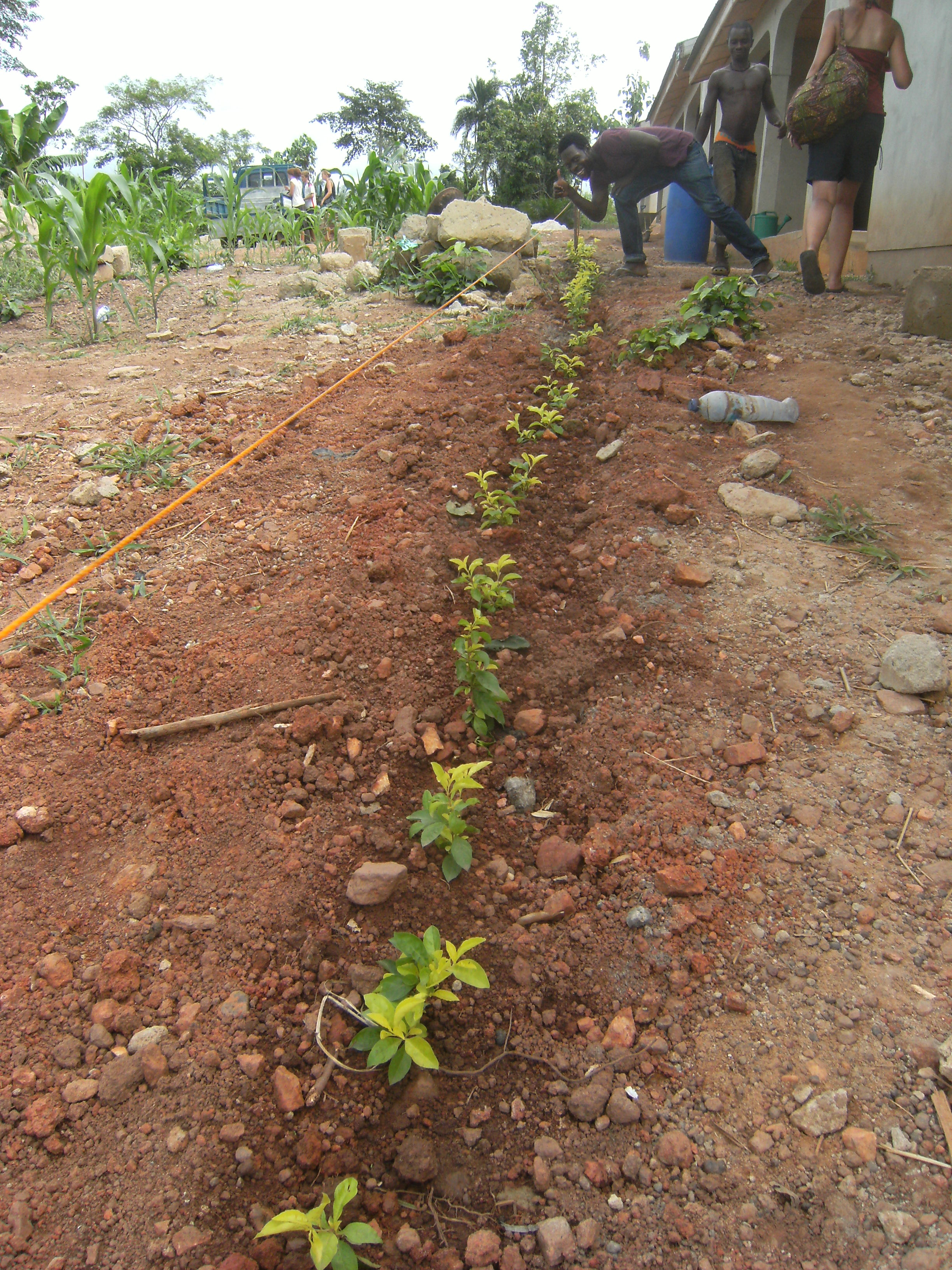 So langsam machen wir uns auch an die Schoenheitsoperationen fuer das Gelaende. Vor allen Haeusern befindet sich nun in einer schnurgeraden Linie mit Luecken als Durchgang eine kleine aber feine Hecke. Na ja, noch sind es kleine einzelne Pflaenzchen, die aber in Zukunft so etwas wie einen Vorgarten fuer die einzelnen Haeuser begrenzen sollen. Ob es dann auch Gartentore gibt, bleibt abzuawarten.