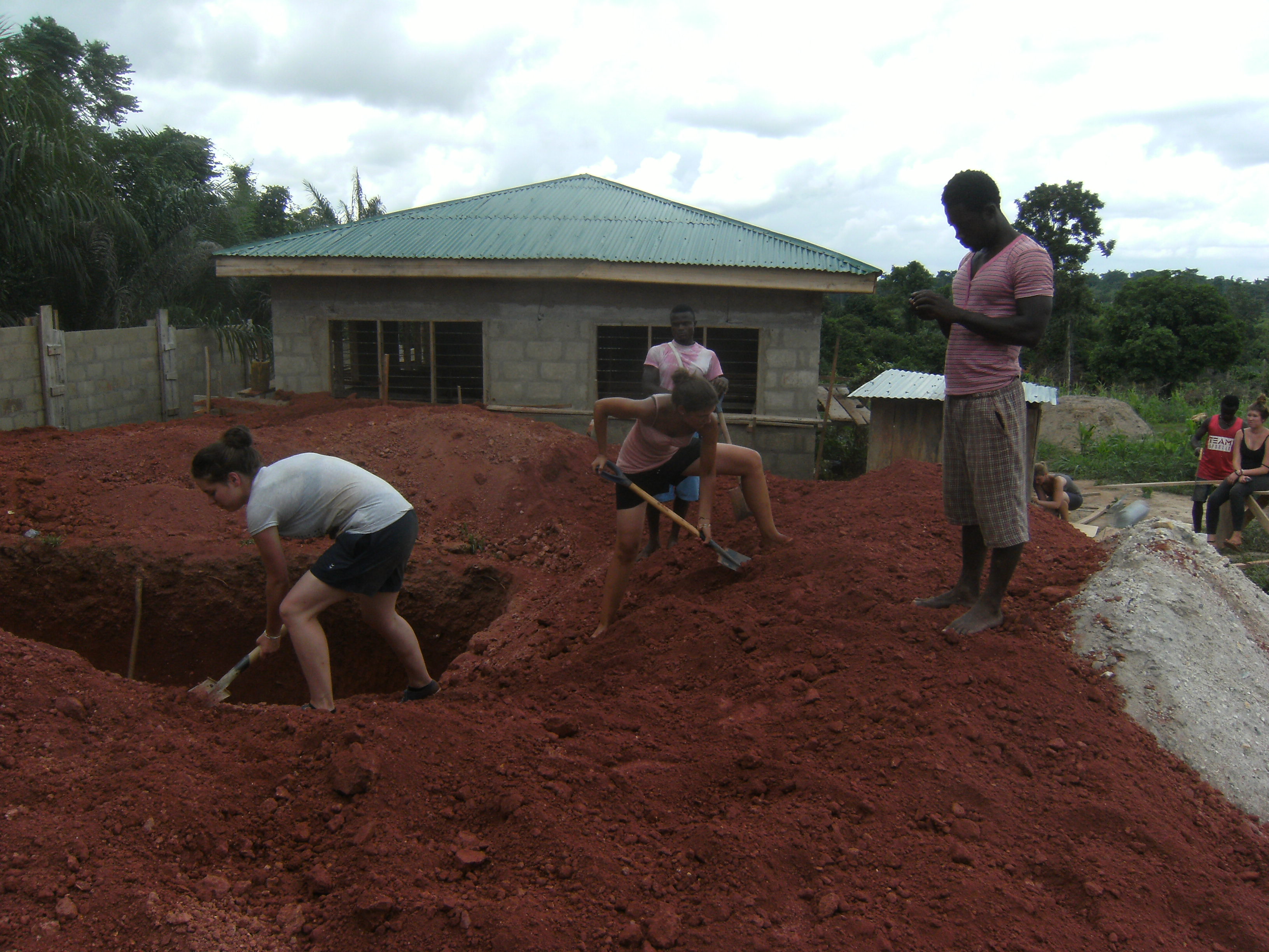 Nun aber genug der Tiere. Es wird schliesslich ein Children’s Village und keine Animal Farm. Auch, wenn es momentan wahrscheinlich umgekehrt anmutet. Aber bis wir endlich das Children’s Village eroeffnen koennen, muss noch einiges geschehen. Die ersten Schritte fuer die Elektrifizierung sind gemacht. Die Electricity Company of Ghana (ECG) hat uns einen Mitarbeiter zur Verfuegung gestellt, der sich ein Bild vom Gelaende gemacht und (mit fleissigen Helfern) die notwendigen Loecher fuer die Strommasten gebuddelt hat. Nun heisst es warten, dass die Strommasten kommen. Das ist momentan keine ganz einfache Sache, denn hier in Ghana sind im Dezember Wahlen. Das bedeutet, dass viele Politiker ihre Bezirke, Doerfer, Staedte etc. noch schnell bis kurz vor der Stimmabgabe mmit Strom versorgen bzw. die Stromversorgung verbessern wollen. So gehen die meisten Strommasten derzeit eher an die in der Politk aktiven als an in der Bevoelkerung Aktiven wie uns. Ob die politischen Stromprojekte jedoch jemals fertiggestellt werden, steht in den Sternen. Sicher ist aber, dass unser Stromprojekt so schnell wie moeglich zum Ende kommen soll und so verbringen Douglas und Nana Yaw von LoszuGhana viel Zeit damit, den Leuten der ECG auf die Fuesse zu treten bis wir endlich unsere Strommasten bekommen. Wir druecken die Daumen!