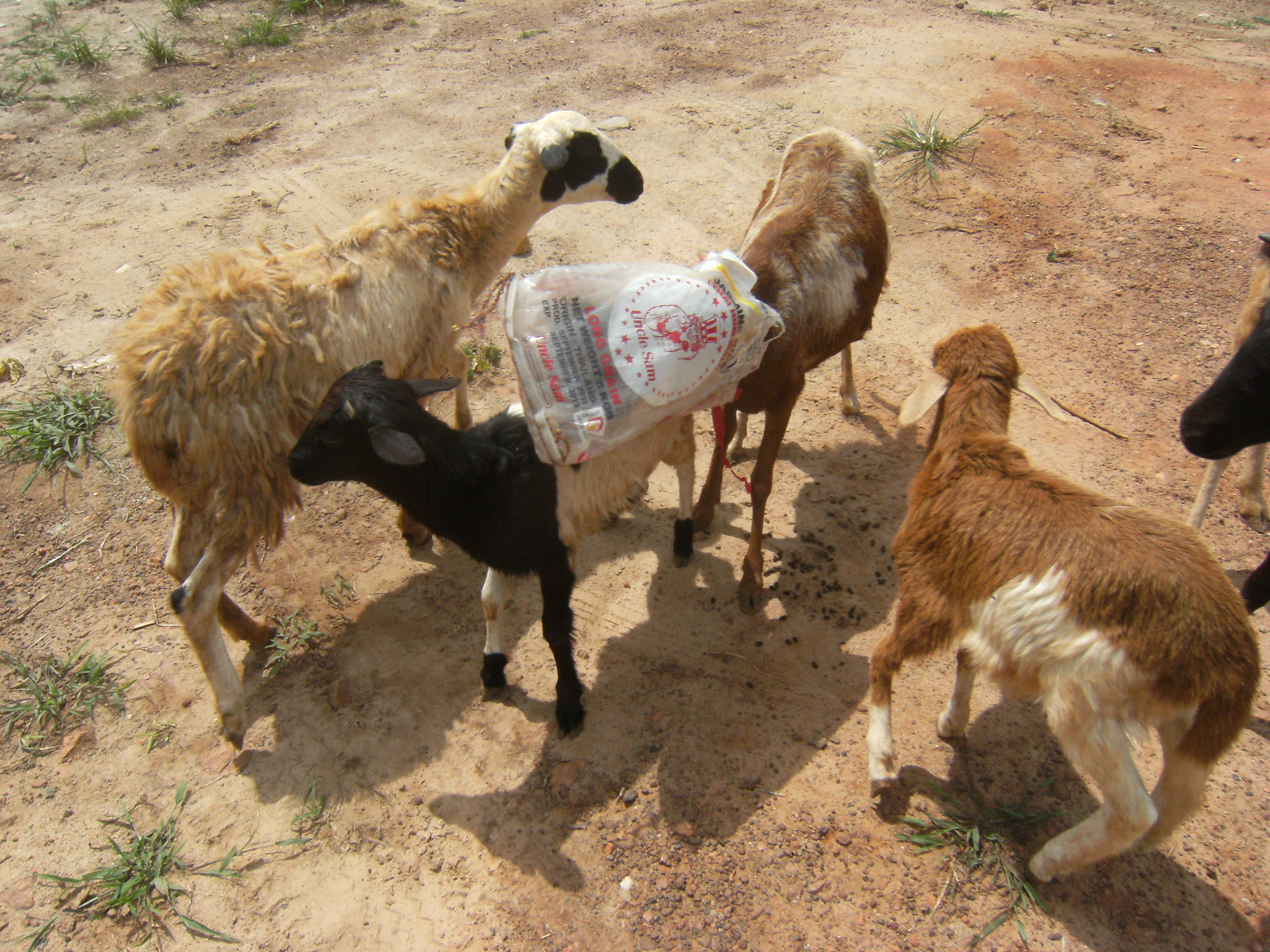 Oh, und auch den Schafen geht es gut…wenn sie denn nicht gerade den Kopf in den Reissack stecken.