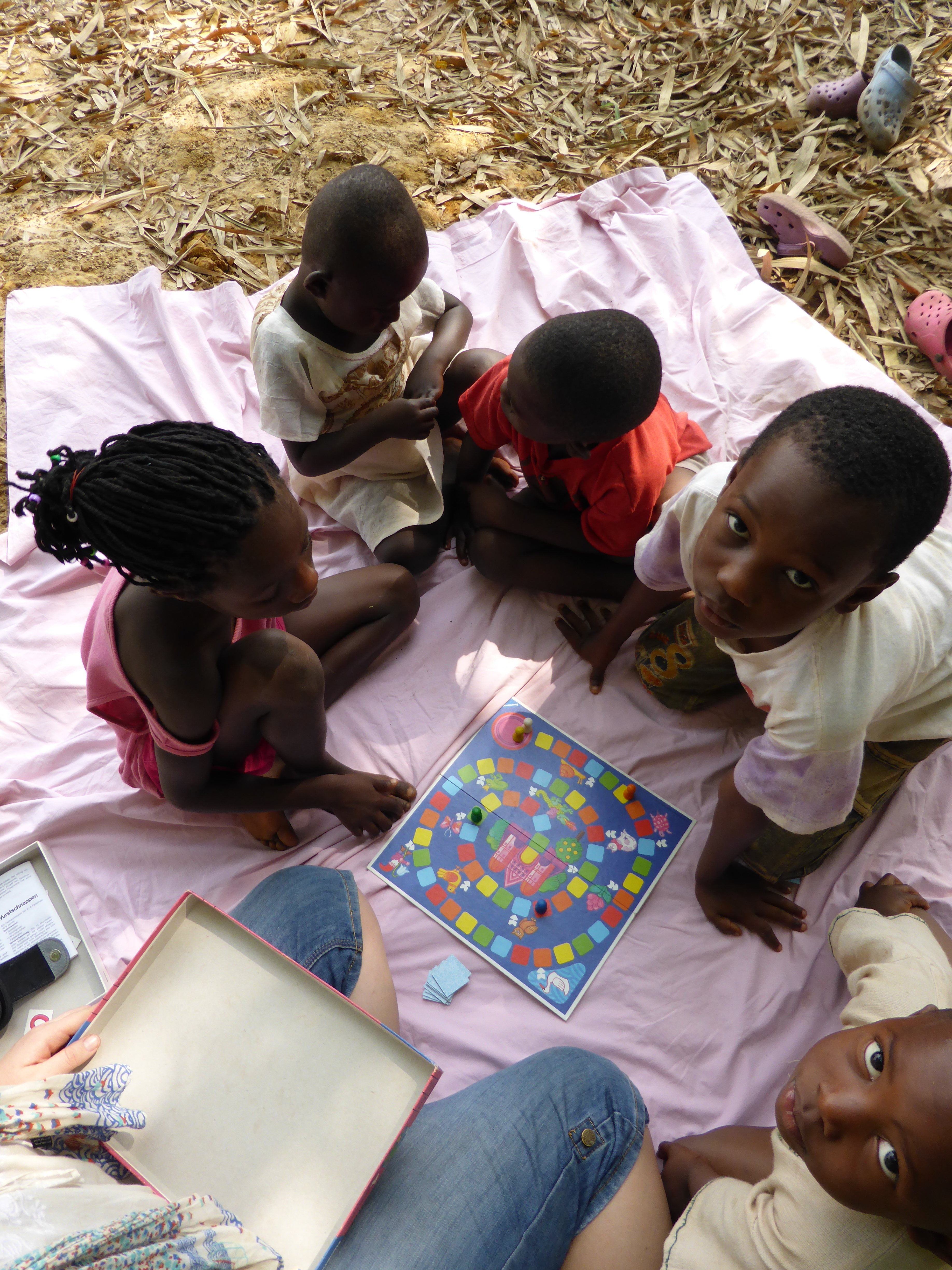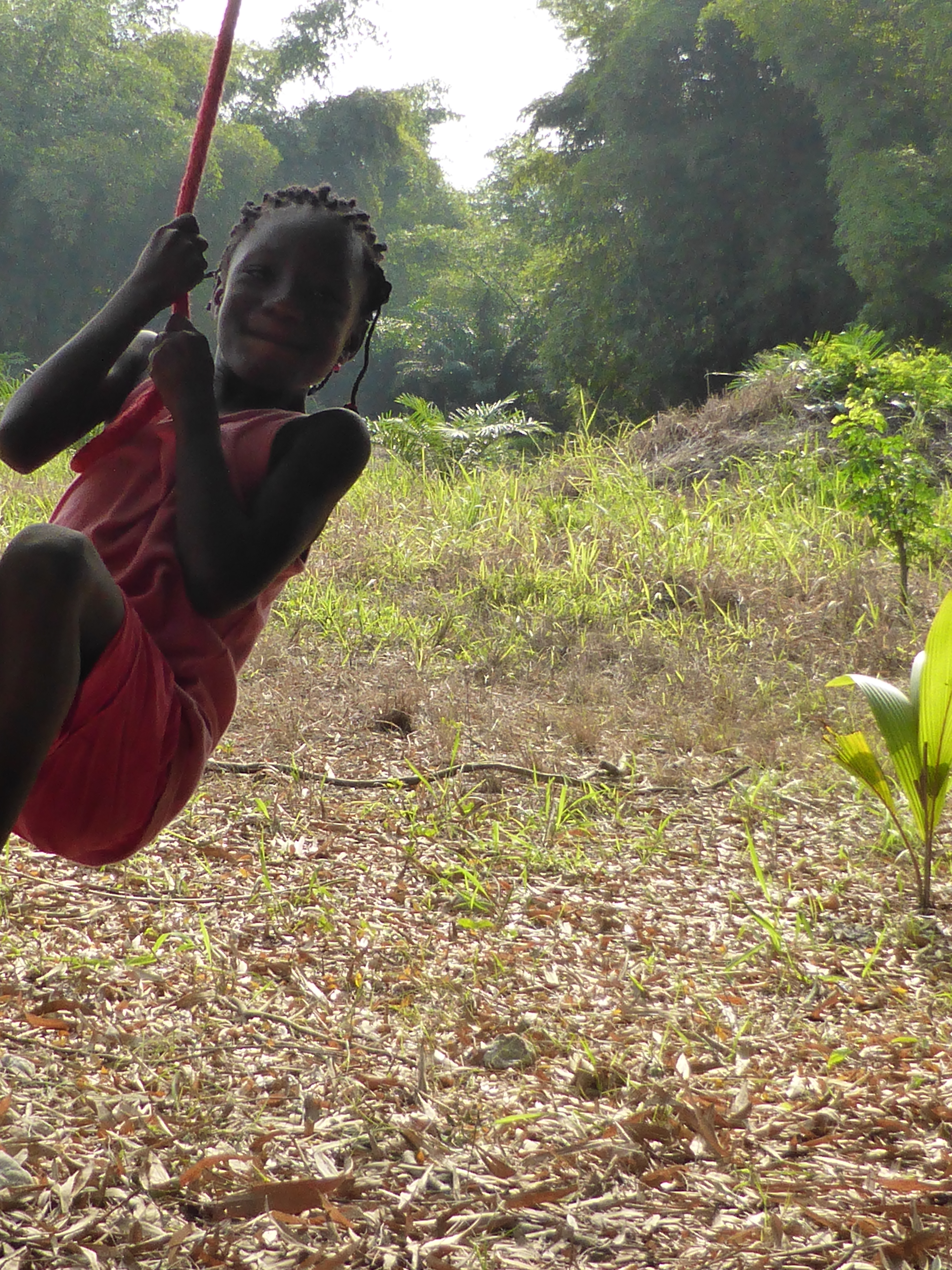 Jetzt bin ich wieder zurück, die Mitbringsel sind verteilt, mein Kopf ist mittlerweile auch aus den Wolken – wo er irgendwo zwischen Deutschland und Ghana ein paar Extrarunden gedreht hat – wieder fest auf meinem Hals und meine Füße wieder fest auf dem Boden der Tatsachen angekommen. Den Kindern geht es gut, den MitarbeiterInnen ebenfalls. Ich habe Bambusfort, entstehenden Brunnen, wachsendes Haus etc. mit eigenen Augen bestaunt, habe Balu, meinen neuen Haushundefreund begrüßt, nach Eseln (ob wohl in diesem jahr aus zwei drei werden?), Schafen, Katzen etc geschaut und mir zunächst eine Woche Eingwöhungszeit verordnet. Diese Woche wurde gut genutzt, ich bin auf dem neuesten Stand und habe u.a. mit den Kindern einen Samstagvormittagsausflug zu unserer Kokospalmenfarm an den Fischteichen gemacht. Gemeinsam mit den Eseln sind wir bepackt mit Spielen etc. losgezogen, um Bäume zu erklettern, an Seilen zu schwingen, im Bach zu plantschen und zu spielen. Es war ein wunderbarer Vormittag, der einem Kinderkinoabend folgte.